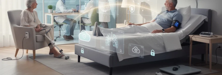Les données collectées peuvent déclencher des alertes à destination des aidants ou des services de soins à domicile lorsqu’une rotation n’a pas eu lieu depuis trop longtemps, ou lorsque le patient tente de sortir du lit de manière inhabituelle (risque de chute). Certains lits intelligents transmettent également des informations sur la fréquence respiratoire ou le rythme cardiaque durant le sommeil, contribuant ainsi à un monitoring nocturne discret mais continu. Pour les patients en soins de longue durée à domicile, ces dispositifs rapprochent les standards de surveillance de ceux des services de gériatrie ou de soins palliatifs.